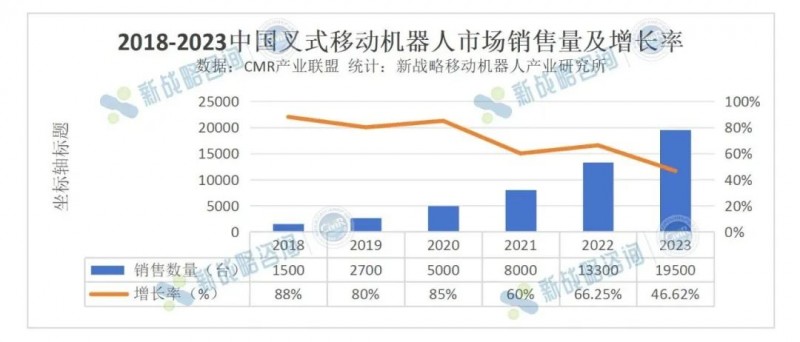 據(jù)CMR產(chǎn)業(yè)聯(lián)盟數(shù)據(jù)、新戰(zhàn)略移動機器人產(chǎn)業(yè)研究所統(tǒng)計,2023年中國叉式移動機器人銷量達(dá)19500臺,同比增長46.62%。